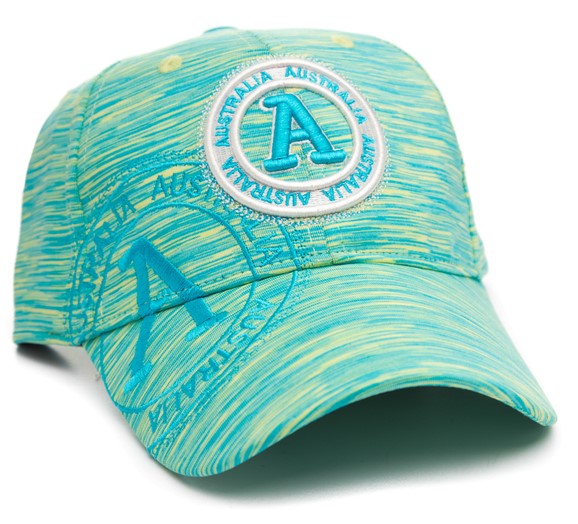 Trendy Australia ladies cap with 3D embossed 'A' stamp and embroidery. 100% polyester. Machine washable.